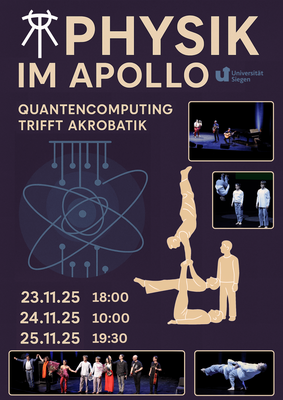 Physik im Apollo goes into its third round! The event aims to give an explanation of quantum computing through music and acrobatics has been sold out in the past two years and will return to the Apollo Theater in Siegen in late November of this year. To reach a broader audience, three performances are scheduled this year, which will feature a talk by Prof. Dr. Lena Funcke from the University of Bonn in addition to the artistic contributions.