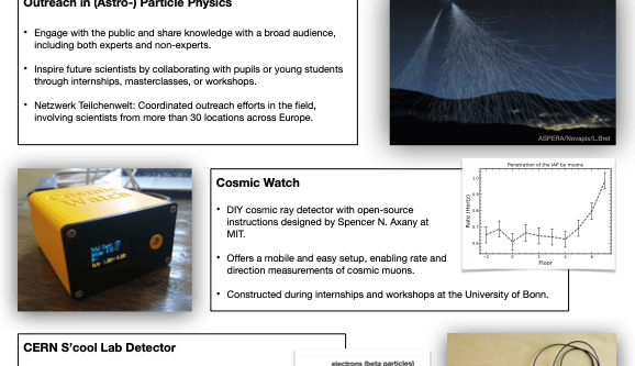 From 8-10 November 2023, participants will be offered an exciting and varied program at the Physics Institute of the University of Bonn: The focus will be on building their own small particle detector. The program also includes lectures on particle physics, a cloud chamber workshop and laboratory visits to the Research and Technology Center for Detector Physics at the University of Bonn. There will be plenty of opportunities to ask all kinds of questions and learn more about the physics of the smallest particles and the construction of detectors that detect and measure the particles.