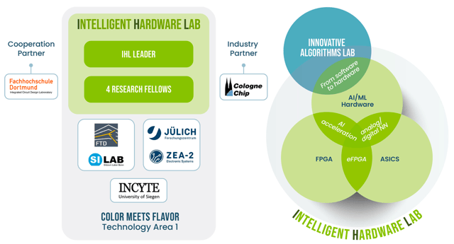 The Intelligent Hardware Lab (IHL) is a cross-institutional initiative within Technology Area 1 (TA1: Instrumentation) of the Cluster of Excellence Color-meets-Flavor. It brings together expertise in FPGA programming, ASIC design, and microelectronics across the participating institutions (Bonn, TU Dortmund, FH Dortmund, Forschungszentrum Jülich, and Siegen).